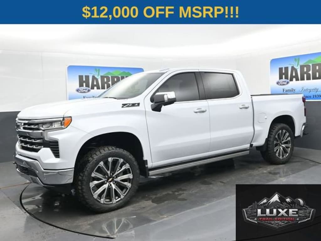 $7,250 off MSRP! 2026 4D Crew Cab Chevrolet Silverado 1500 Polar White LUXE TRAIL EDITION. EcoTec3 5.3L V8 10-Speed Automatic LTZ *Please Note: We turn our inventory daily, please check with the dealer to confirm vehicle availability. DELIVERY IS AVAILABLE. Price does not include Dealer Prep fee of $898 and a $299 VTT. Prices do not include tax or title fees. 4WD